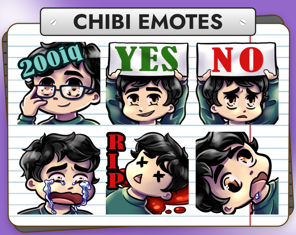 12 Black Hair Chibi Boy Emotes for Twitch / Brown Eyes