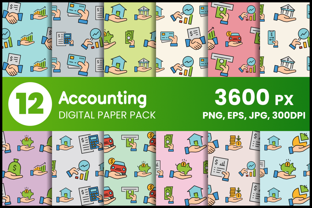 Accounting 12 Digital Paper Set in jpg/png/eps format.