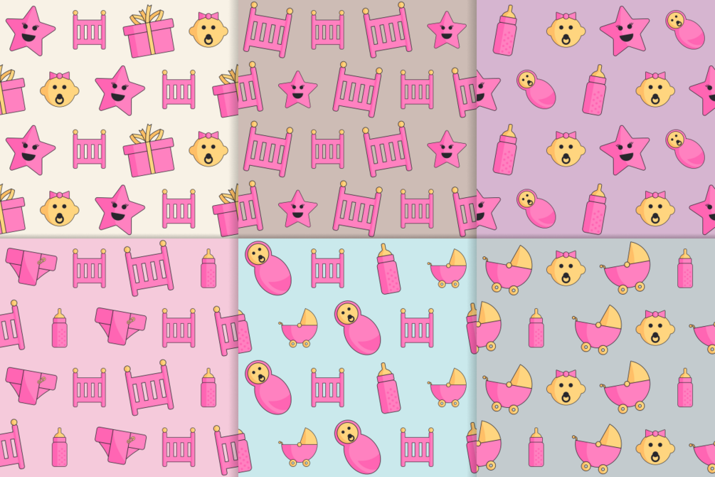 Baby girl 6 Seamless Patterns in jpg/png/eps format.