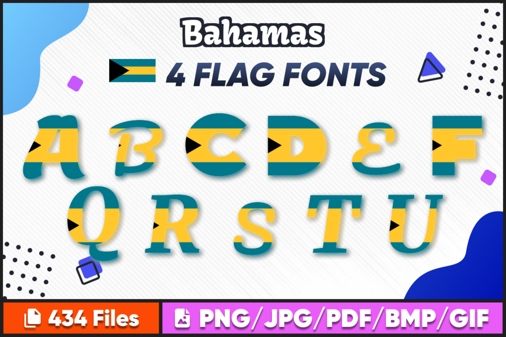 Looking for a unique way to express your love for your country? Check out Bahamas Font free download Flag Font, Alphabet. Our high-quality country font images are perfect for all your crafting needs, including t-shirt designs, scrapbooking, photo albums, card making, mug designs, prints, and more.