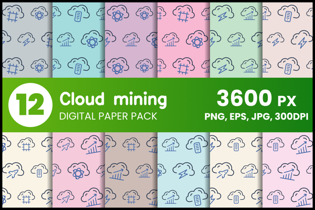 Cloud mining 12 Digital Paper Set in jpg/png/eps format.