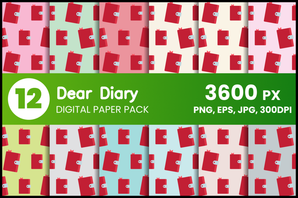 Dear Diary 12 Digital Paper Set in jpg/png/eps format.