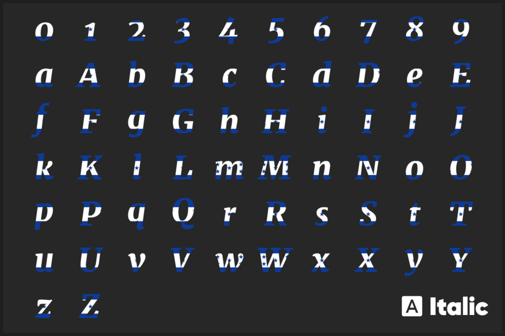 Honduras Font free download Font, Alphabet. Our collection of Honduras Font free download flag fonts features high-quality PNG images in a variety of sizes to fit all your crafting needs. These fonts are perfect for creating unique t-shirt designs, scrapbook pages, photo albums, greeting cards, coffee mugs, and more. Use them with your Cricut or Silhouette cutting machines, or with any graphic design software such as Photoshop, Illustrator, Inkscape, Figma, and Sketch.