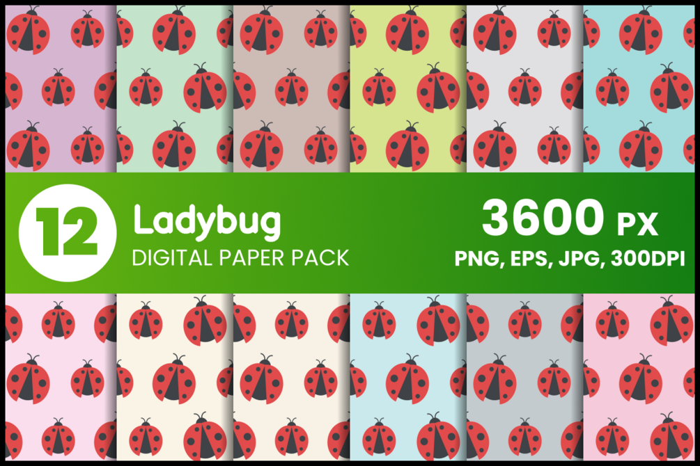 Ladybug 12 Digital Paper Set in jpg/png/eps format.