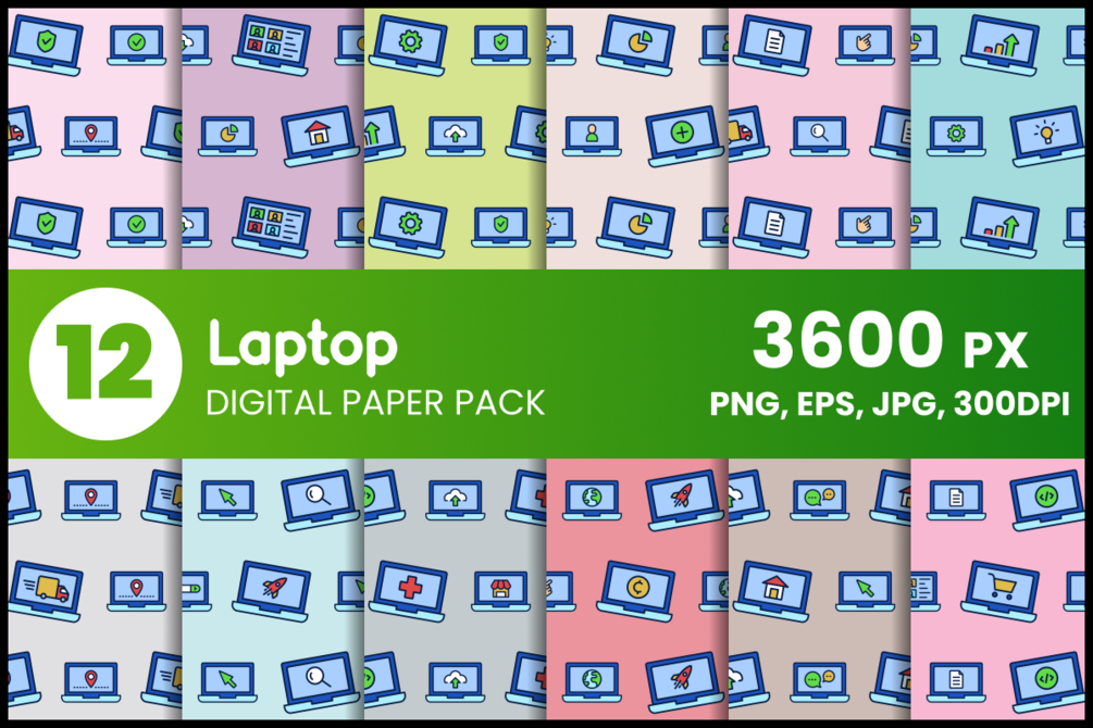 Laptop 12 Digital Paper Set in jpg/png/eps format.