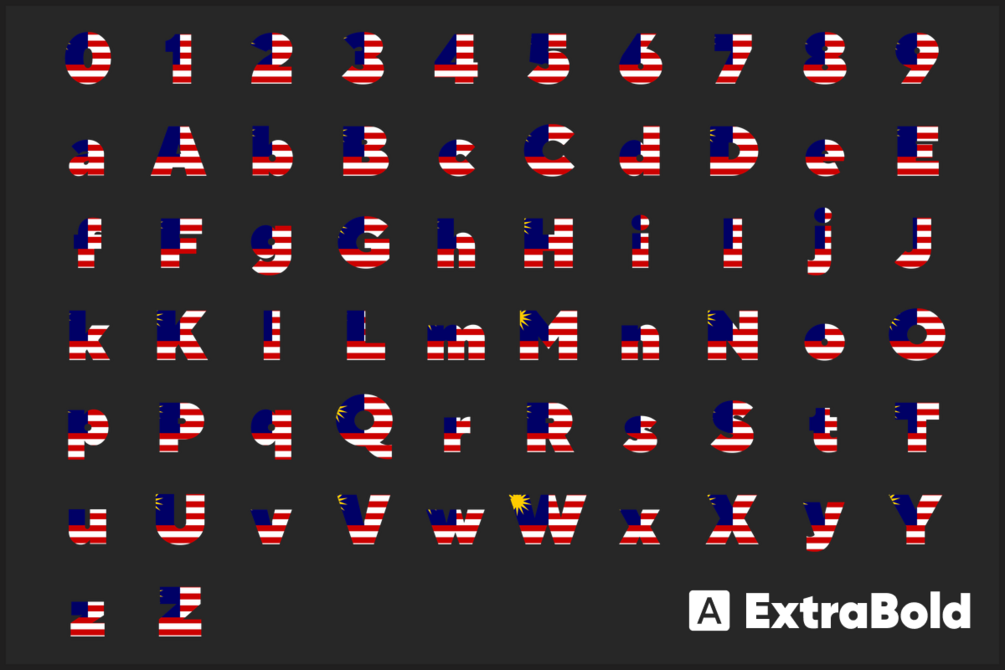 Malaysia Font free download Font, Alphabet. Our collection of Malaysia Font free download flag fonts features high-quality PNG images in a variety of sizes to fit all your crafting needs. These fonts are perfect for creating unique t-shirt designs, scrapbook pages, photo albums, greeting cards, coffee mugs, and more. Use them with your Cricut or Silhouette cutting machines, or with any graphic design software such as Photoshop, Illustrator, Inkscape, Figma, and Sketch.