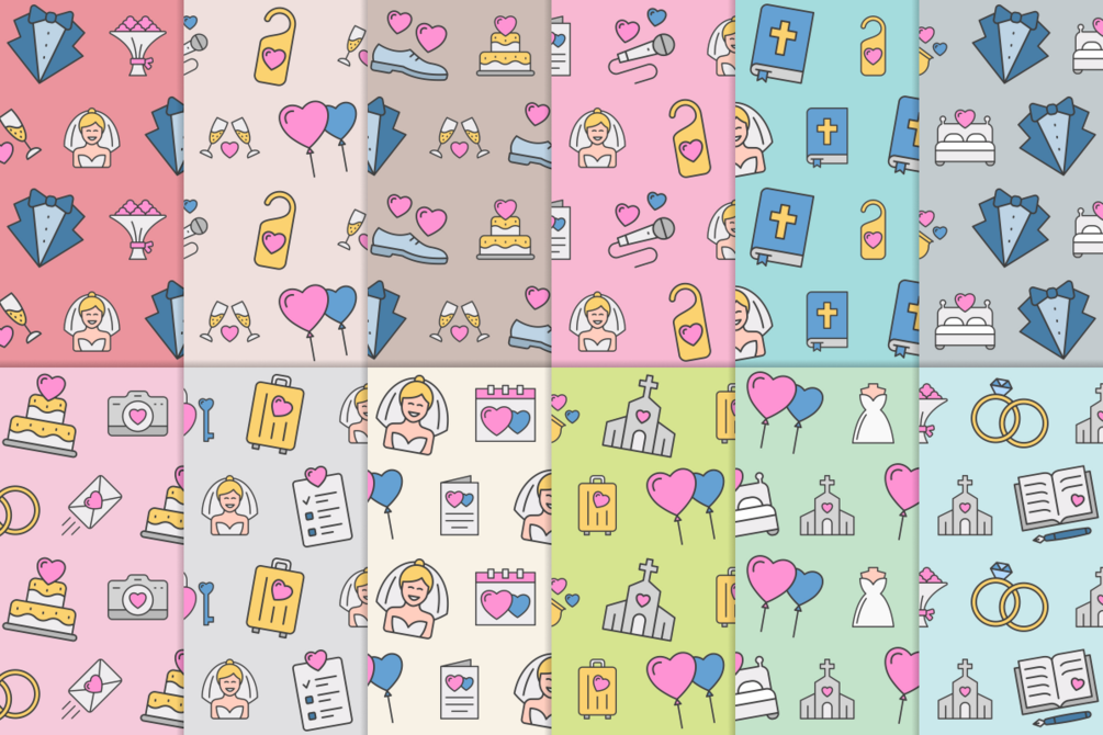 Marriage 12 Digital Paper Set in jpg/png/eps format.