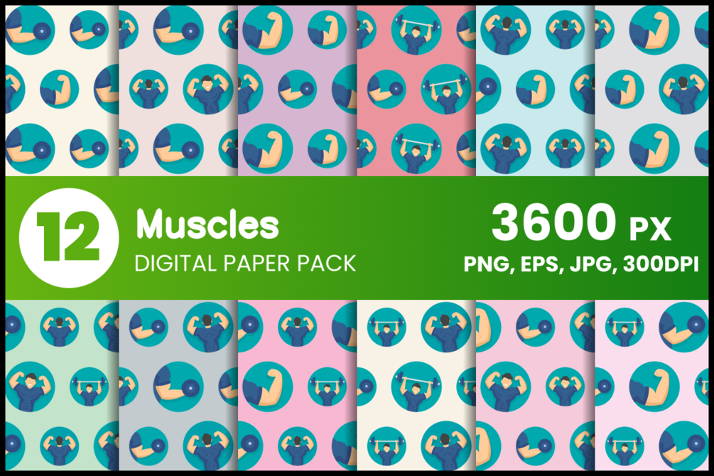Muscles 12 Digital Paper Set in jpg/png/eps format.