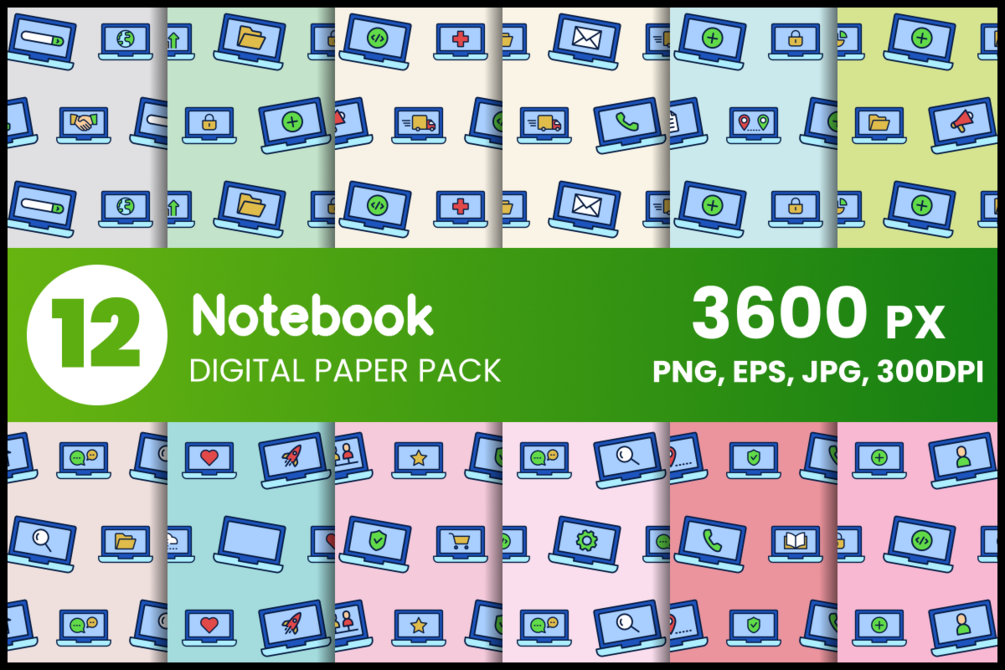 Notebook 12 Digital Paper Set in jpg/png/eps format.