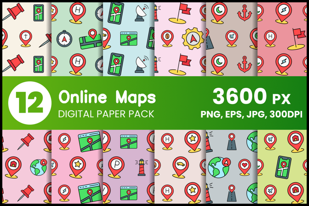 - Online Maps 12 Digital Paper Set;