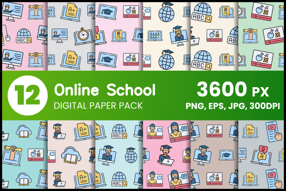 Online School 12 Digital Paper Set in jpg/png/eps format.