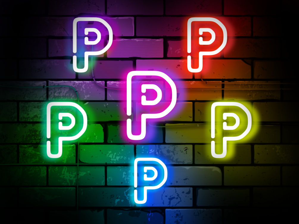 Neon letter P in different colors: Blue, Green, Pink, Red, Yellow and Gradient.