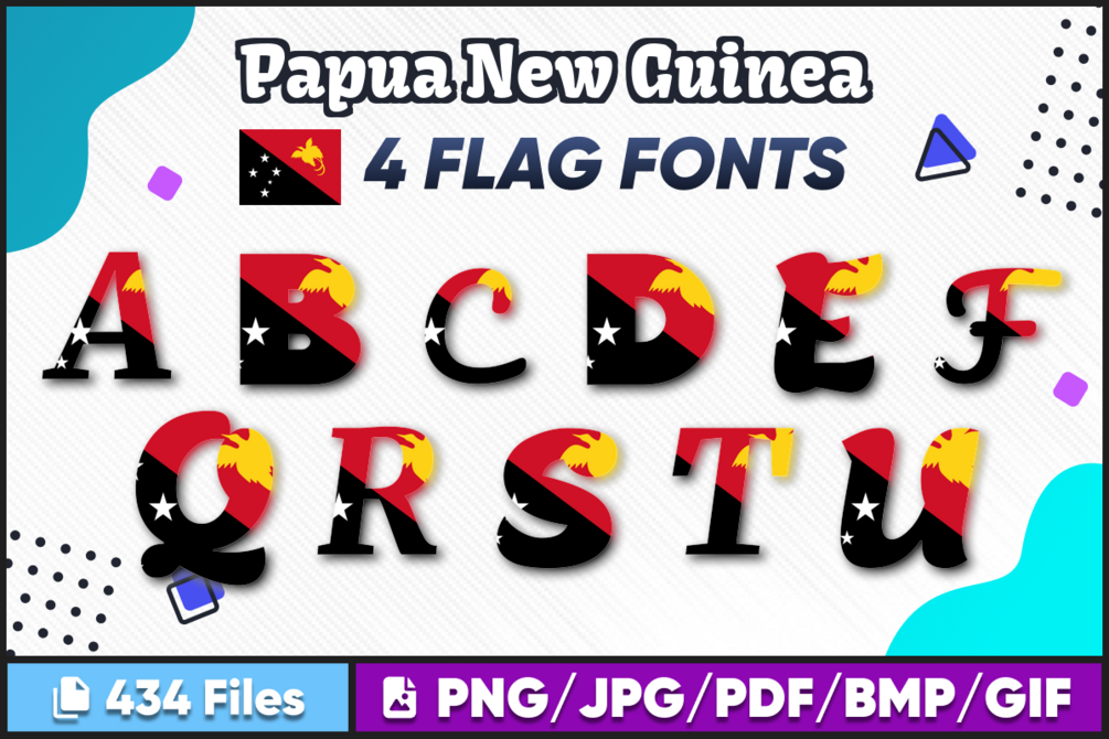 Looking for a unique way to showcase your country pride? Check out Papua New Guinea Font free download Flag Font, Letters! These high-quality font images are perfect for all your crafting needs. Use Papua New Guinea Font free download flag PNG images for t-shirt designs, scrapbooking, photo albums, cards, mugs, prints, and more.