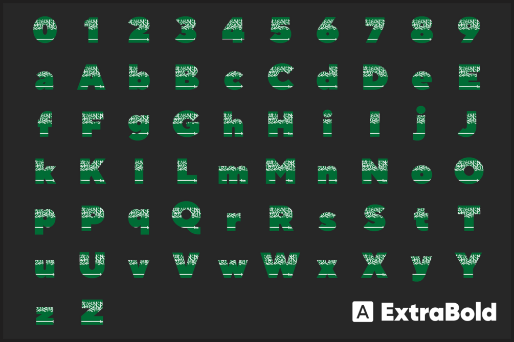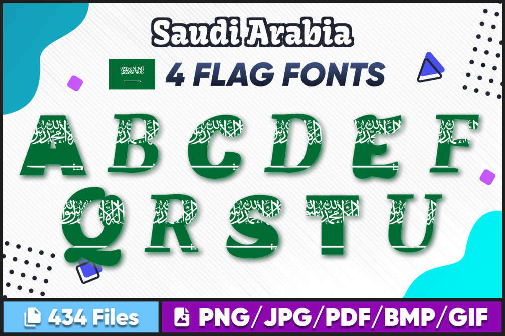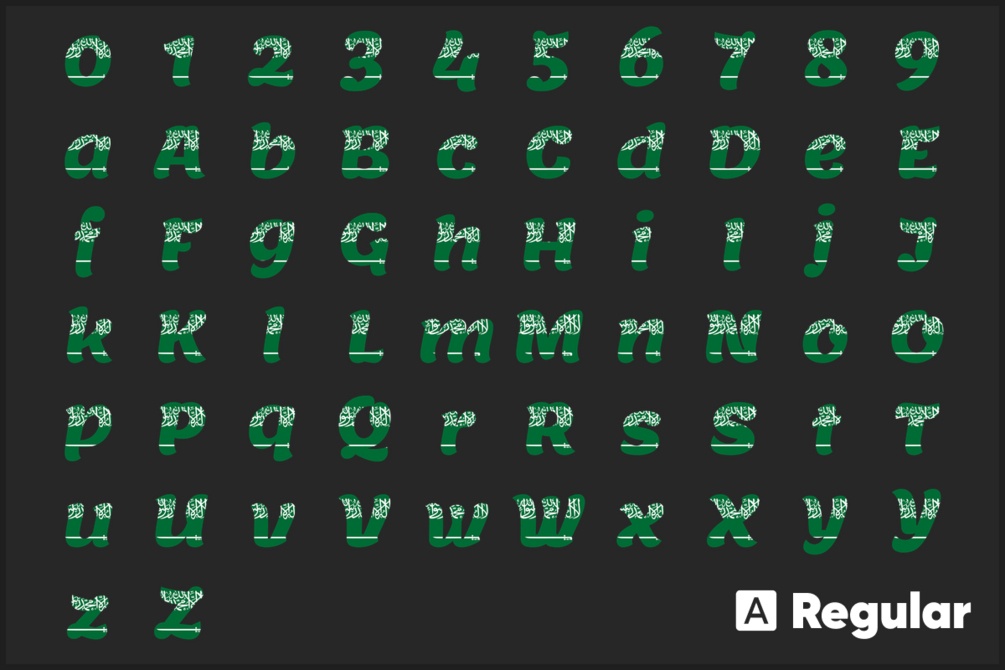 Looking for a unique way to showcase your country pride? Check out Saudi Arabia Font free download Flag Font, Letters! These high-quality font images are perfect for all your crafting needs. Use Saudi Arabia Font free download flag PNG images for t-shirt designs, scrapbooking, photo albums, cards, mugs, prints, and more.
