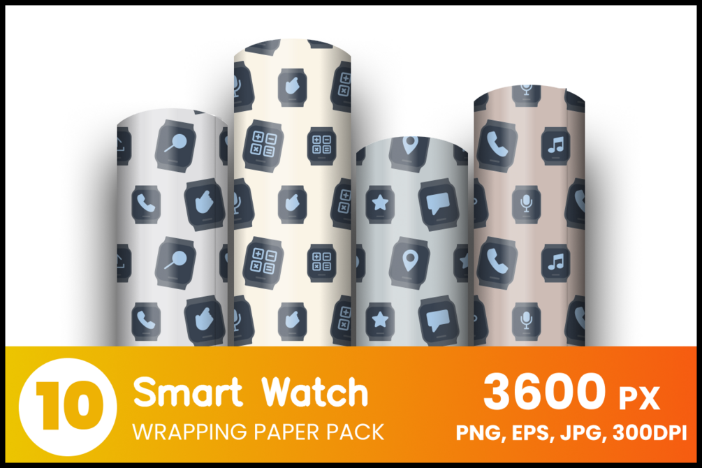 You will get an archive with 10 Smart Watch wrapping paper (10 JPG, 10 PNG, 10 EPS)