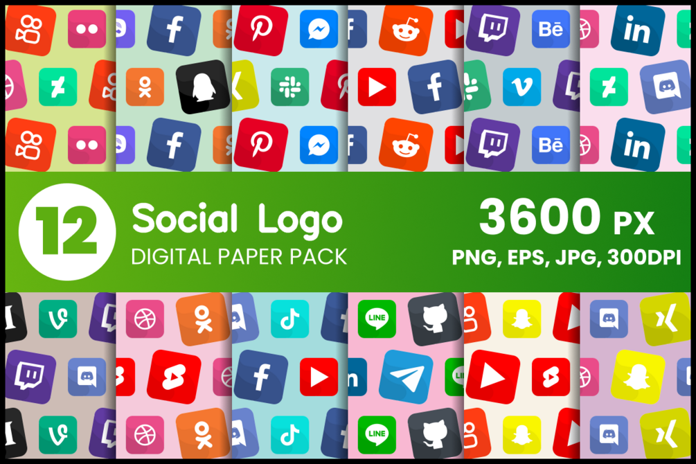 - Social Logo 12 Digital Paper Set;