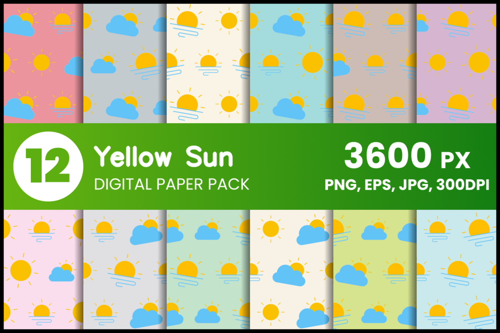 Yellow Sun 12 Digital Paper Set in jpg/png/eps format.